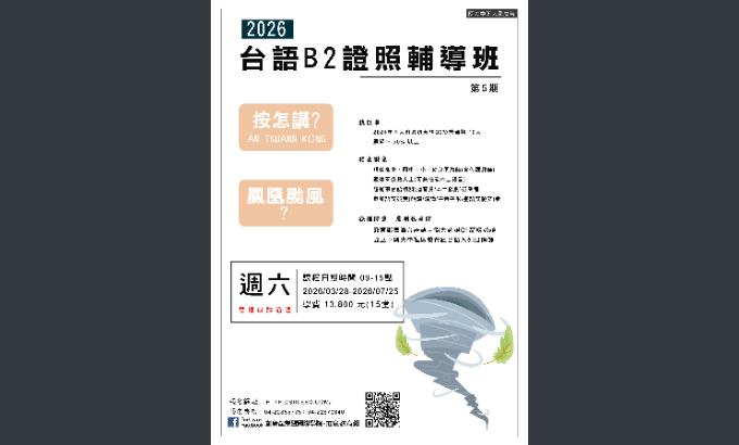 教務處 教學組【公告】因應108課綱本土語言在國高中推動,國立中興大學三至七月舉辦「台語B2證照輔導班第5期」,敬請惠予公告,並薦派業務相關同仁報名參加Post last modified:2026-03-03Post category:最新消息來文-8下載下載下載A09550000Q11509000680-2下載 Post Views: 9