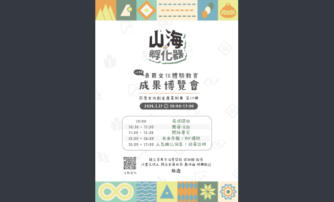 教務處 教學組【公告】國立東華大學辦理「114年東區文化體驗內容輔導計畫」成果博覽會活動,敬邀花蓮、臺東國高中小學教職員參與Post last modified:2026-01-21Post category:最新消息來文-76下載1140032865-0-1下載下載-6下載 Post Views: 9