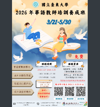 教務處 教學組【公告】華語文教學研究中心開設「2026全球華語教師培訓養成班」培訓課程,請協助宣傳並鼓勵所屬參與課程Post last modified:2026-03-11Post category:最新消息來文-43下載1151001343-0-0下載下載-4下載 Post Views: 3