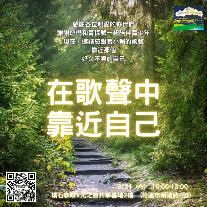五、活動內容:為感謝親愛的夥伴們持續和青探號一起陪伴青少年。現在,邀請您跟著小賴的歌聲靠近那個好久不見的自己。