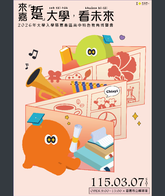 一、為提供全國高中職學生及嘉義區國中學生多元升學資訊,本府訂於115年3月7日(週六)辦理「2026年大學入學暨嘉義區高中特色教育博覽會」。